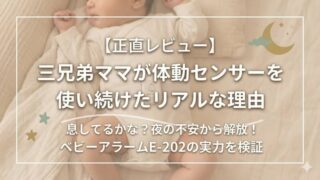 商品レビュー ベビーセンサーは必要?SIDSや窒息が不安なママへ|体動センサーの口コミと正直レビュー 「息してる?」と夜中に何度も呼吸確認して眠れないママへ。SIDS不安を抱え三兄弟を育てる筆者が、体動センサー(ベビーアラーム)を5年以上使った本音をレビュー。ユニースリープとの併用や1日16円のコスパ、誤作動の注意点まで、実体験を元に詳しく解説します。 2026.03.26 商品レビュー